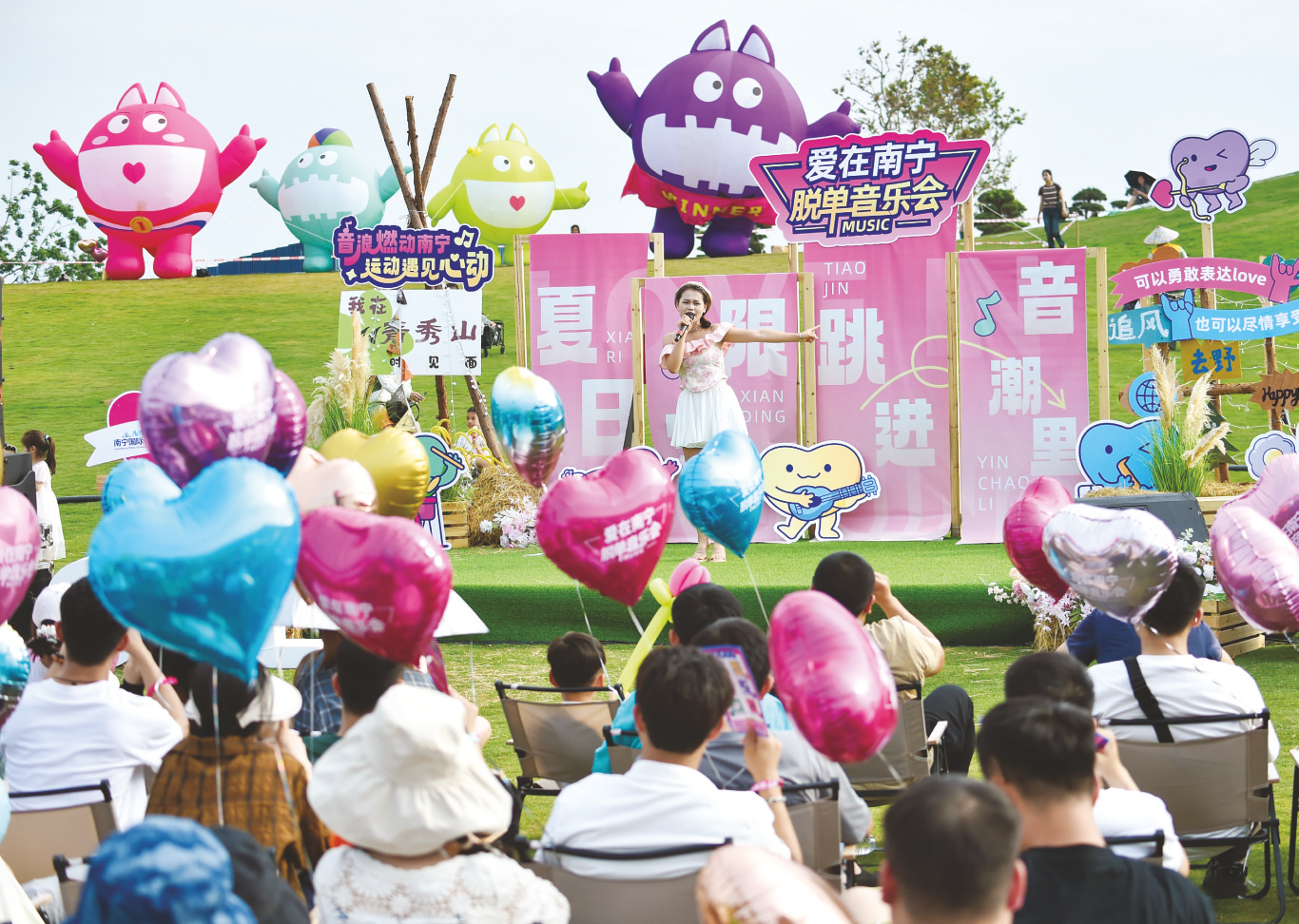 青年男女在青秀山風(fēng)景區(qū)參加脫單音樂(lè)會(huì)。記者 潘浩 攝