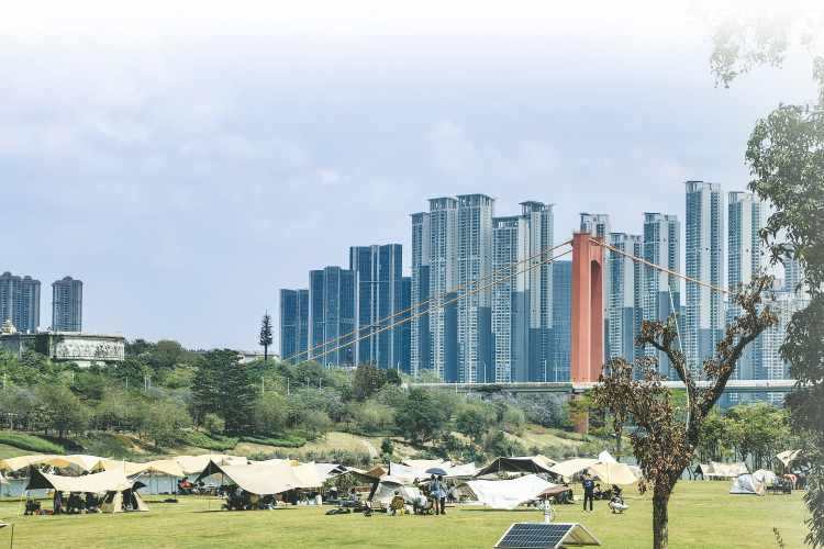 市民在邕江沿岸公園里露營(yíng),擁抱自然,放松身心。記者 葉子榕 攝