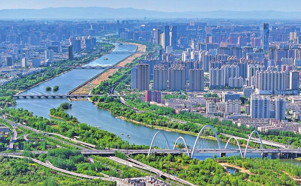 5月9日,太原市汾河公園,造型獨(dú)特的橋梁與波光粼粼的汾河相互映襯,一幅優(yōu)美的城市生態(tài)畫(huà)卷徐徐展開(kāi)。記者 劉通 攝