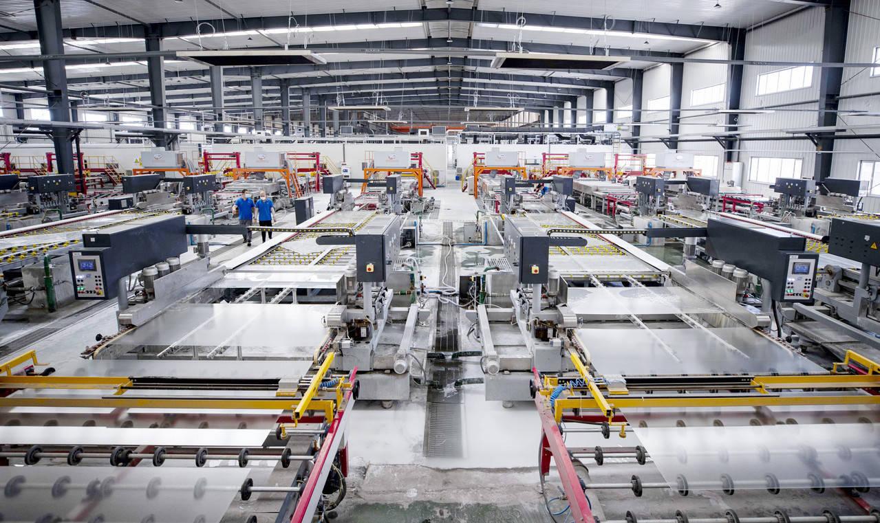 位于寧夏石嘴山市的寧夏金晶科技有限公司的光伏玻璃深加工生產(chǎn)線。新華社記者 楊植森 攝