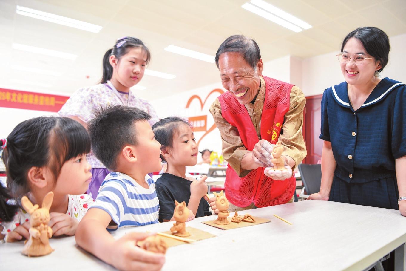 精彩的“夸下??凇毕娜詹萜阂魳窌鋵嵙耸忻裼慰偷男蓍e時光。??诘奈幕钬S富多彩,精神文明底蘊深厚。記者 蘇弼坤 攝