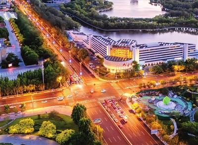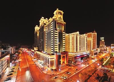 友誼南路夜色中的津典時(shí)代廣場(左)和蓮花酒店(右)如同璀璨的明珠