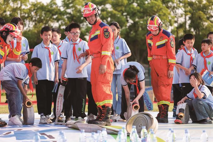 近日,鹽城市鹽都區(qū)消防救援大隊開展消防宣傳進校園活動。活動現(xiàn)場內(nèi)容豐富、形式多樣,為北龍港小學廣大師生和家長帶來了一場別開生面且具有教育意義的消防安全知識盛宴。 王小康 攝