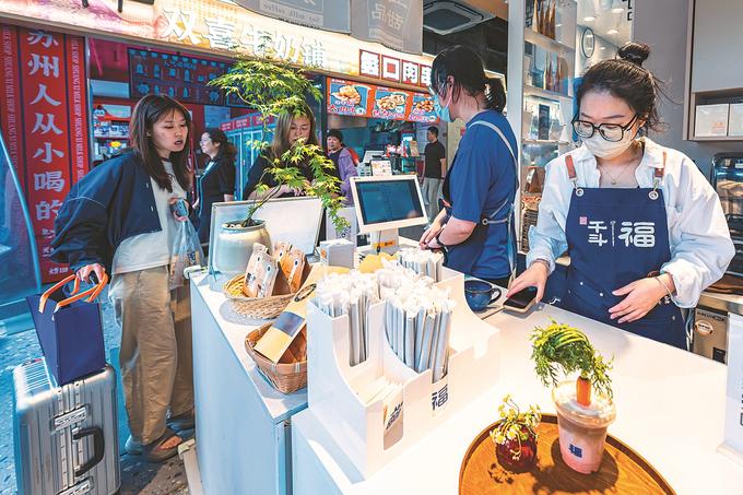 6月8日,蘇州姑蘇區(qū)十全街,95后陳澄開的嘿啰面包店,門庭若市。靠著面包品質(zhì)和十全街人流量,小店開業(yè)兩年,生意持續(xù)紅火。闕明芬 攝 (視覺江蘇網(wǎng)供圖)