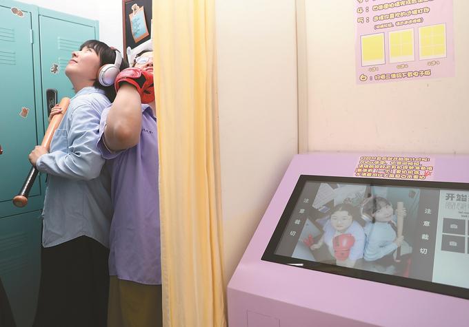 6月10日,南京石鼓路一家俯拍大頭貼小店,年輕女孩們邊拍邊玩,笑聲不斷。記者 魏林娜 胡楠 攝