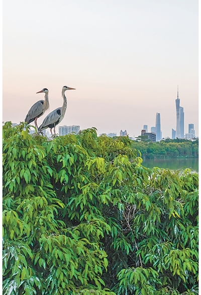 海珠湖鷺鳥(niǎo)島與廣州塔。