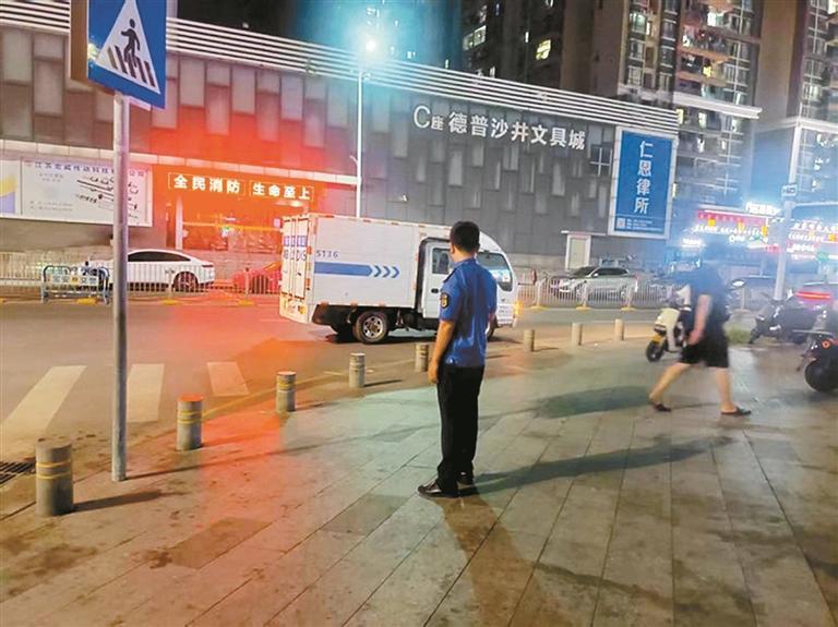 與此同時,各街道統(tǒng)籌梳理所屬部門、社區(qū)巡查整治隊員,形成巡查隊伍,聯(lián)動環(huán)衛(wèi)力量,對路面水馬、橫幅廣告(燈箱廣告、遮陽傘)、“三亂”小廣告、垃圾桶臟污滿溢、亂堆放、散置垃圾、非機動車違停、零星流動攤販、亂掛曬、綠化垃圾等十項影響市容市貌、可快速處置的問題,以“現場巡查、現場處置”為原則,實現問題快速發(fā)現、現場處置。