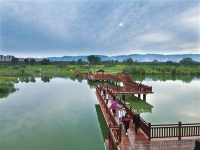 風(fēng)光旖旎,是河流的容顏。順流而下,汾河四期如一幅水墨長(zhǎng)卷在城北徐徐鋪展。雁丘園內(nèi),當(dāng)年元好問(wèn)筆下“問(wèn)世間、情是何物”的慨嘆,如今沉淀為濕地間婉轉(zhuǎn)的鳥鳴與蘆葦迷宮的低語(yǔ)。流水潺潺,棧道曲折,每一處彎折都藏著靜謐的驚喜。再往前行,豁然開朗處,“小三亞”的金色沙灘在陽(yáng)光下閃耀,孩子們追逐嬉戲,帳篷如花朵點(diǎn)綴在碧水金沙之畔,城市人心中向往的“遠(yuǎn)方”觸手可及。