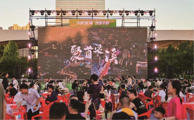 大屏幕前,人潮涌動,歡呼聲響徹云霄,在無錫江南古運河畔,“蘇超”“第二現(xiàn)場”上演著堪比賽場的狂熱?!疤K超”的爆火,讓這個夏天格外熱鬧,梁溪多處化身足球狂歡勝地,惠山映月里祠田廣場、運河匯水上舞臺、崇安寺二泉映月廣場、清名橋廣場……市民游客在大屏前暢聊戰(zhàn)術,燒烤、啤酒、小龍蝦、各色小吃琳瑯滿目,夜色之下,巨幕與美食繪就動感十足的消費熱力圖。