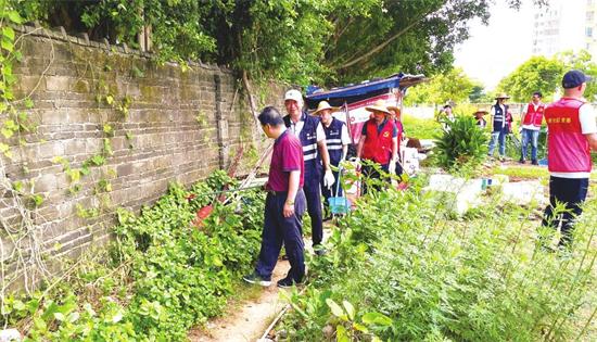 27日當天,盡管烈日炎炎,但文化支隊黨員干部的熱情高漲。大家早早來到福安社區(qū),手持掃帚、鏟子、垃圾袋、滅蚊噴霧等工具,迅速投入到緊張有序的清掃工作中。