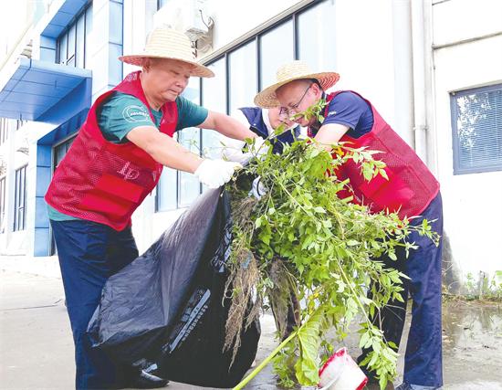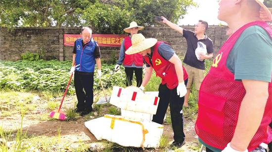 在清掃過程中,大家分工明確,密切配合。有的黨員干部負責清掃路面的落葉、紙屑和雜物,他們認真細致,不放過任何一個角落,將街道打掃得干干凈凈;有的專注于清理衛(wèi)生死角,那些長期堆積的垃圾和雜物在他們的努力下被——清除;還有的黨員干部幫助清理菜園里泡沫箱中的積水,消除蚊蟲滋生的環(huán)境。