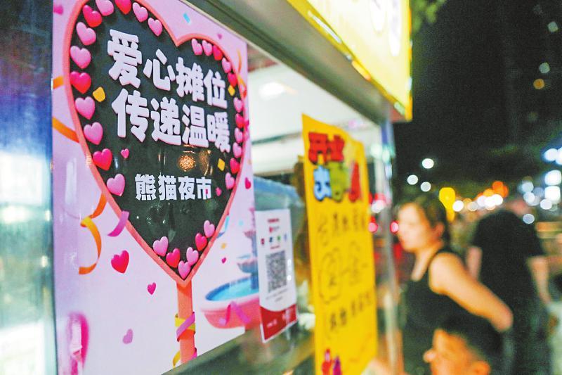 李云峰介紹,目前熊貓夜市采取的是“物業(yè)+公司+街道+政府”的運行模式,除了100余個常規(guī)攤位外,還設有30個愛心攤位,免費提供給困難家庭和殘障人士。憑相關證件核實信息后,滿足夜市安全、飲食營業(yè)等要求即可出攤。