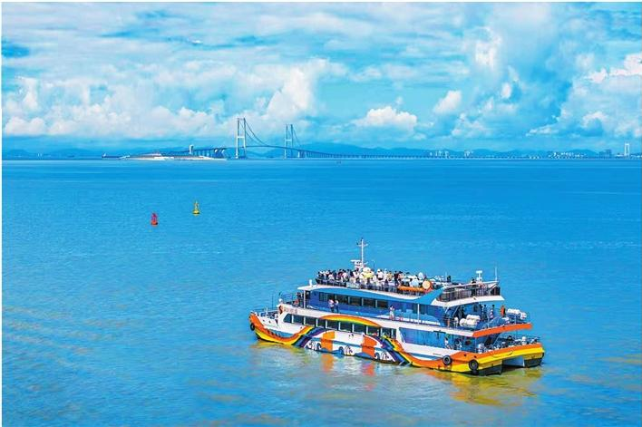在伶仃洋中暢行的“海上彩虹號”觀光游船,游客沉浸式感受灣區(qū)魅力。
