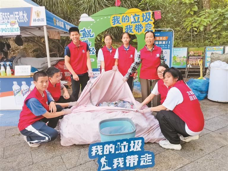 記者了解到,國慶中秋長假,深圳全市各區(qū)持續(xù)開展“山海撿塑 綠美鯤鵬”系列宣傳活動,在鯤鵬徑沿線登山出入口處設(shè)置了20余個志愿服務(wù)實踐點。身穿紅馬甲的志愿者駐守“山海撿塑”志愿服務(wù)實踐點,為市民發(fā)放“我的垃圾我?guī)ё摺崩?,引?dǎo)市民參與“撿塑換享”“空瓶換水”等互動活動。據(jù)統(tǒng)計,10月1日至8日,全市各區(qū)累計發(fā)動超3萬人次參與活動,回收空瓶近10萬個,兌換礦泉水及其他環(huán)保禮品超1萬份,以實際行動踐行“我的垃圾我?guī)ё摺杯h(huán)保理念。