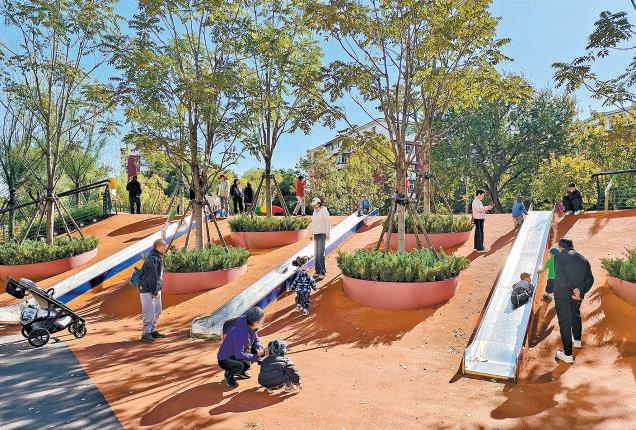 “豐彩城市藝術(shù)季”賽事結(jié)果揭曉,圖為新村街道漫氧·樂(lè)谷公園。記者 劉平攝