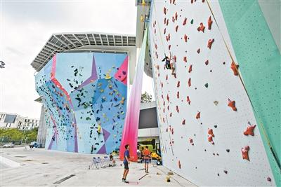 廣州大學城體育中心攀巖場是國內(nèi)首批零碳體育場館改造項目。記者 莊小龍攝