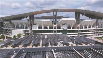 廣東省奧體中心及周邊的建筑均安裝上了光伏板進行綠色發(fā)電。記者 駱昌威攝