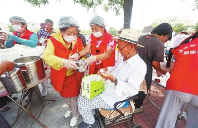 “家里就我們老兩口,以前一做飯就發(fā)愁?,F(xiàn)在好了,出門走幾步就能吃上免費(fèi)的熱乎飯!”85歲的王爺爺一邊把裝好飯菜的保溫盒掛上三輪車車把,一邊感慨。老人們說笑著相互揮手道別,院子里洋溢著溫馨融洽的氣氛。