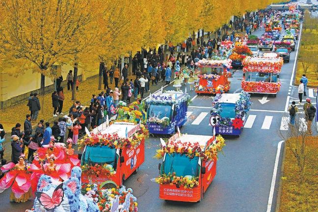 立冬當(dāng)天,大興區(qū)龐各莊鎮(zhèn)舉行花車巡游活動(dòng),近60輛各式主題花車為觀眾獻(xiàn)上一場花車盛宴。張全躍 攝