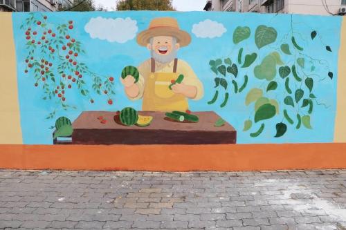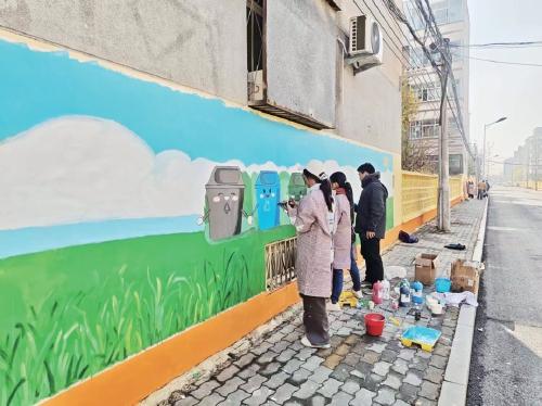 為讓墻繪作品既貼合城市文明建設(shè)要求,又貼近民生、便于傳播,雙方多次深度對接:一方面將垃圾分類、街巷環(huán)境提升等城管重點工作轉(zhuǎn)化為生動畫面,讓市民在觀賞中直觀了解城管工作;另一方面融入濟陽地標(biāo)、特色農(nóng)副產(chǎn)品、鼓子秧歌等本土元素,將抽象文明理念與地域文化轉(zhuǎn)化為場景化視覺內(nèi)容,增強群眾認同感。