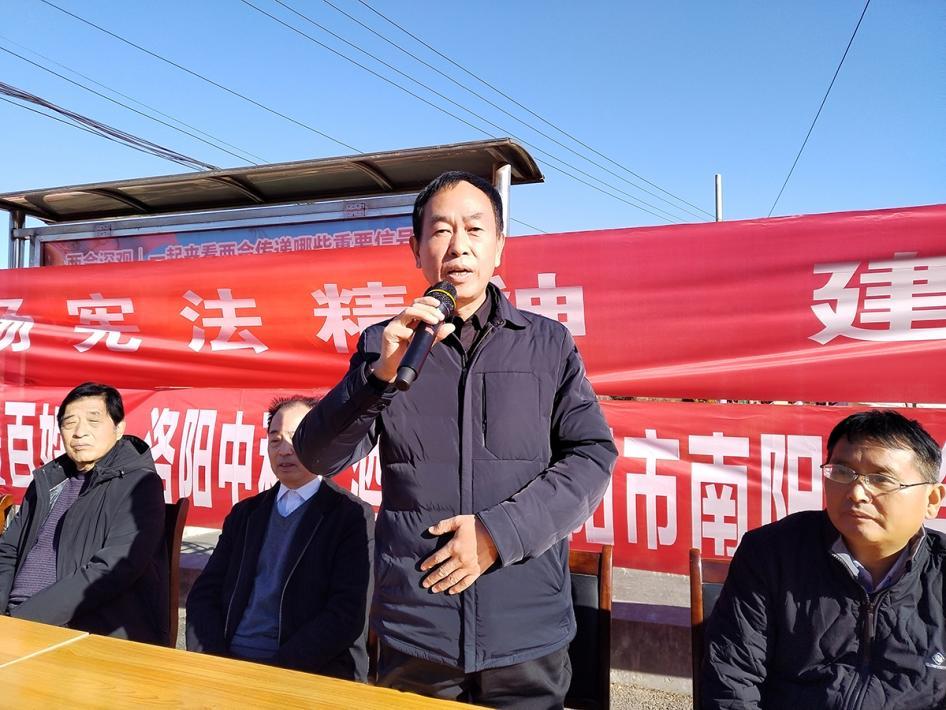 初冬暖陽明媚,河南省洛陽市伊川縣水寨鎮(zhèn)司馬溝村村委會門前的空場地上,村民們的笑容與陽光相映生輝。12月3日,在我國第十二個國家憲法日到來之際,洛陽市南陽商會及律師志愿者團隊一行30余人,走進這座底蘊深厚的傳統(tǒng)村落,開展普法宣傳,為老人送上暖心蘋果,讓法治溫度與敬老溫情在鄉(xiāng)村暖心守護。