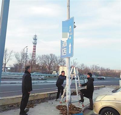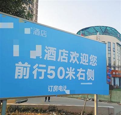 在北辰區(qū)志成路與津圍公路交會(huì)處的人行道上,一個(gè)印有“某某酒店歡迎您”的藍(lán)色廣告牌也設(shè)置在人行道上,十分顯眼。記者在東麗區(qū)津薊聯(lián)絡(luò)線(xiàn)徐莊村附近的路燈桿上,也看到一個(gè)印有“某某酒店”字樣的藍(lán)底白字廣告牌,在道路對(duì)面有一個(gè)印有“某某制冷配件進(jìn)口”字樣的廣告牌則設(shè)置在綠地上。