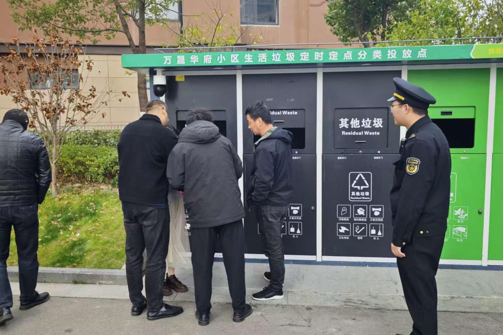圖為執(zhí)法人員開展垃圾分類管執(zhí)聯(lián)動“清源行動”