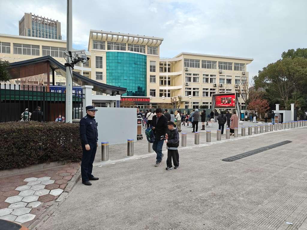 圖為在丹城第五小學外執(zhí)勤的執(zhí)法人員