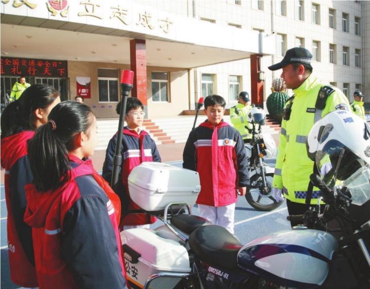 喀左縣公安局交管大隊(duì)工作人員為學(xué)生講解交通安全知識。 邰闖 攝