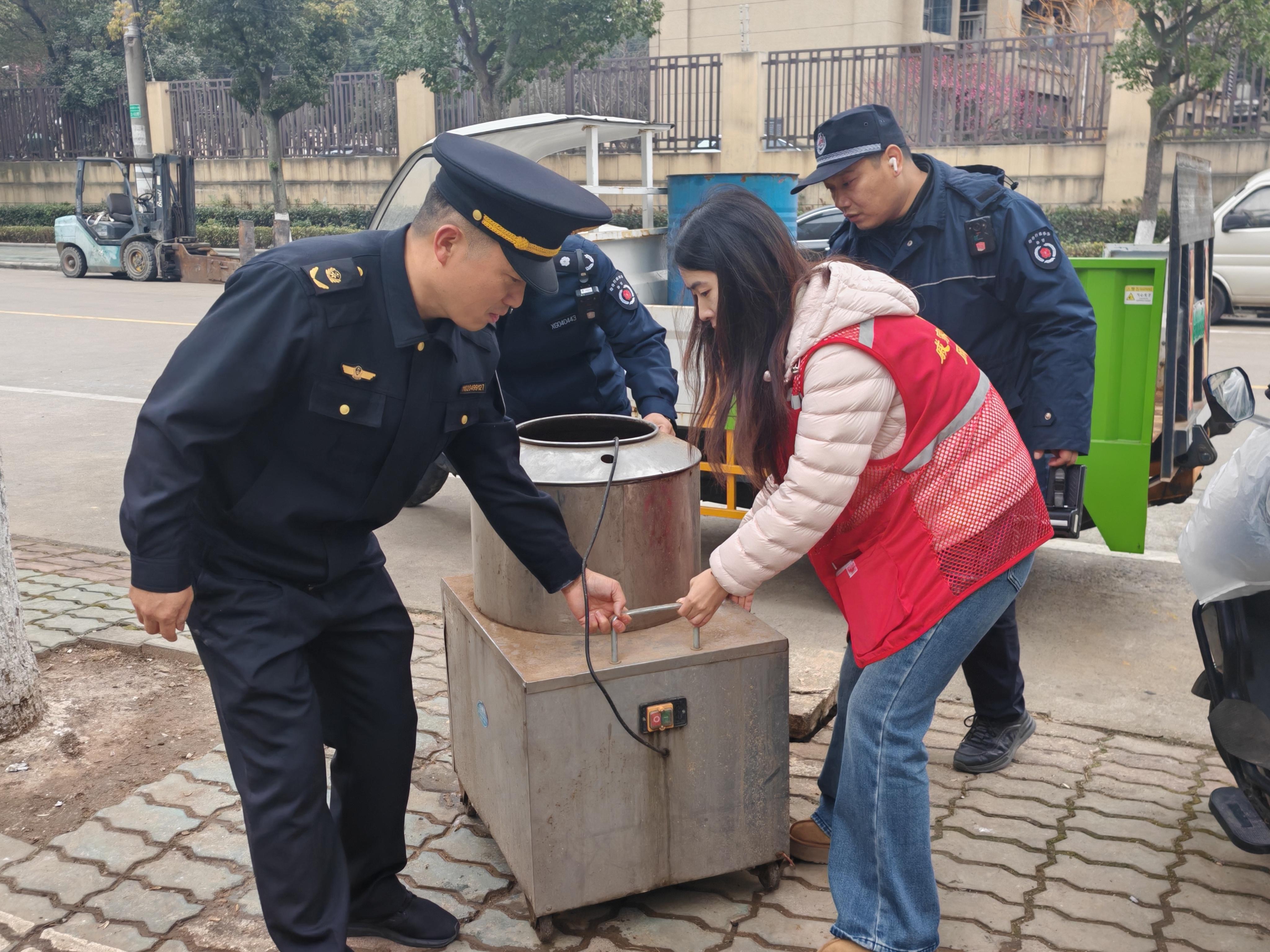 薄弱部位“大掃除”。小區(qū)退紅位置常常是亂堆放、亂停車的重災區(qū),破壞綠化、隨地垃圾問題更是屢見不鮮,戚家山港城嘉苑小區(qū)退紅位置便有此“困擾”。由于該小區(qū)物業(yè)正在走退出程序,退紅位置的日常管理近乎停擺。為干凈清爽迎新年,中隊聯合鷹山社區(qū)提前排摸梳理問題點位,逐一走訪相關商戶,耐心勸導商戶對各自物品進行清理,同時執(zhí)法人員與社區(qū)網格員、轄區(qū)志愿者一同對衛(wèi)生死角進行徹底“大掃除”?!斑@么一打掃,看著確實舒服多了,以后我也會自覺做好‘門前三包’,共同把這份整潔保持住!”經營汽修店的王先生表示。