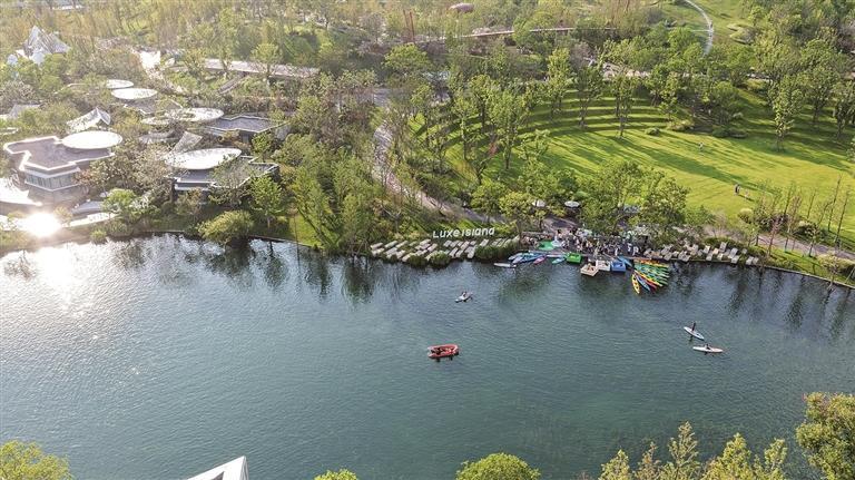 通過補(bǔ)齊基礎(chǔ)設(shè)施短板、重塑生態(tài)與公共空間,如今,蜿蜒的水線上,皮劃艇劃破粼粼波光,蕩漾著水面下的蔥蘢綠意。不遠(yuǎn)處的動物農(nóng)場,孩童的歡笑與鹿鳴聲交織,草坪上市民在扎帳篷露營……2000畝公園水系與人的活動深度交融,勾勒出一幅“城水共生、主客共享”的生動畫卷。