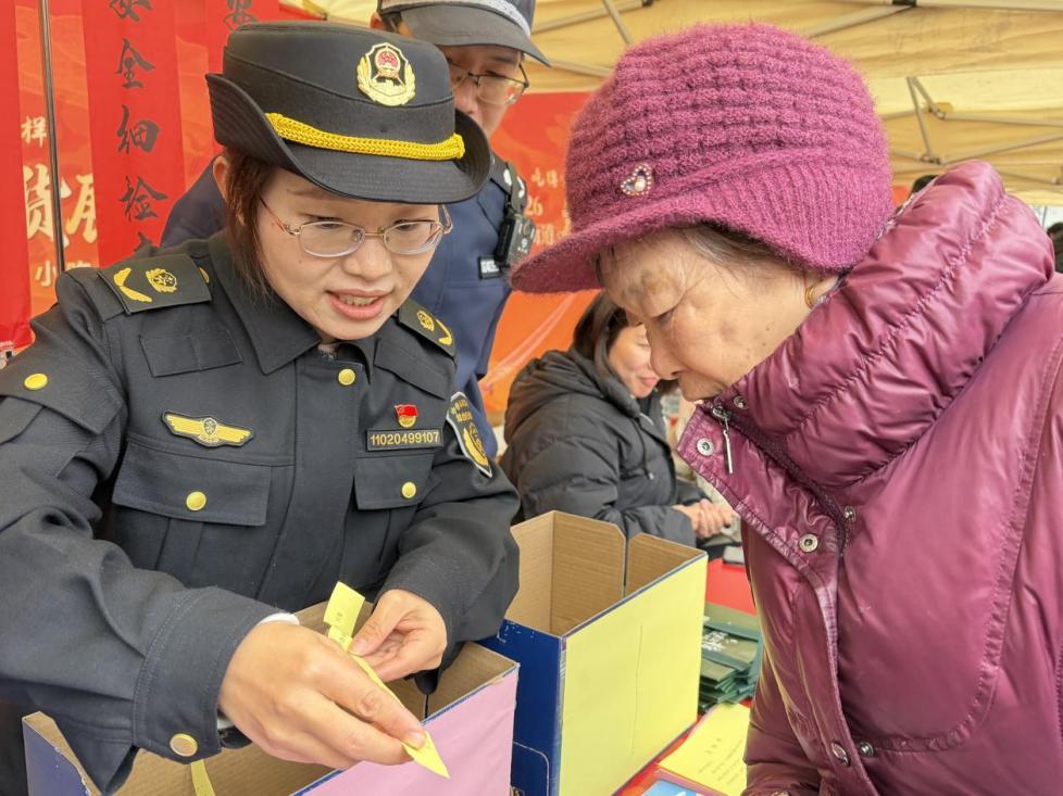 2月1日,柴橋影劇院廣場的年貨節(jié)人氣爆棚,海鮮、糕點(diǎn)、春聯(lián)等年味商品琳瑯滿目,柴橋中隊(duì)看準(zhǔn)這一“普法黃金窗口”,在集市設(shè)立宣傳展位,既不影響市民逛集采購的興致,又能讓普法宣傳精準(zhǔn)覆蓋各類人群。