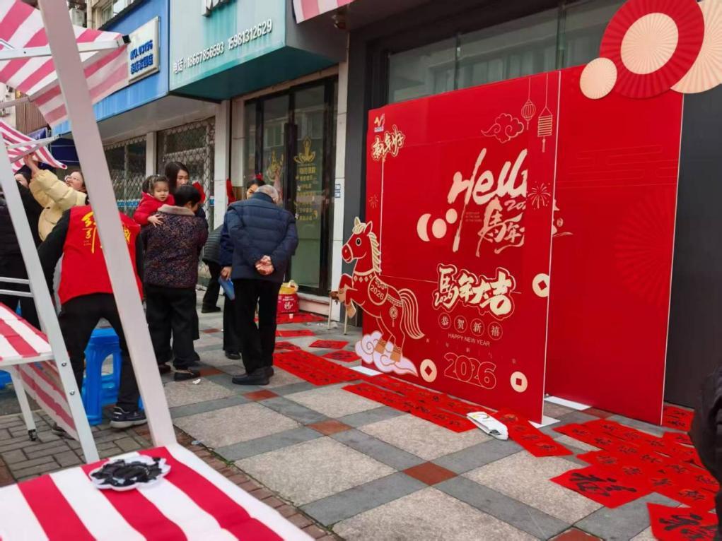 在新碶街道,執(zhí)法中隊(duì)聯(lián)合社區(qū)開展“翰墨傳情送祝福,執(zhí)法為民暖萬家”主題活動(dòng),活動(dòng)現(xiàn)場筆墨紙硯整齊排布,大紅春聯(lián)紙鋪滿桌面,隊(duì)員康亞平的身影格外顯眼,他鋪紙、蘸墨、揮毫,一系列動(dòng)作行云流水,筆下春聯(lián)遒勁有力、氣韻十足,引得群眾頻頻稱贊。平日里,他們是守護(hù)轄區(qū)市容市貌的“守護(hù)者”,穿梭在街巷之間,整治違規(guī)占道、規(guī)范經(jīng)營秩序、排查安全隱患,用嚴(yán)格執(zhí)法守護(hù)群眾生活環(huán)境;此刻,他們放下執(zhí)法記錄儀,凝神揮毫,一筆一畫皆是深情,一字一句飽含祝福,讓嚴(yán)肅的執(zhí)法形象變得可親。