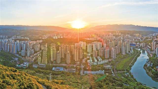 晨曦漫綦江,山巒高樓錯(cuò)落相依