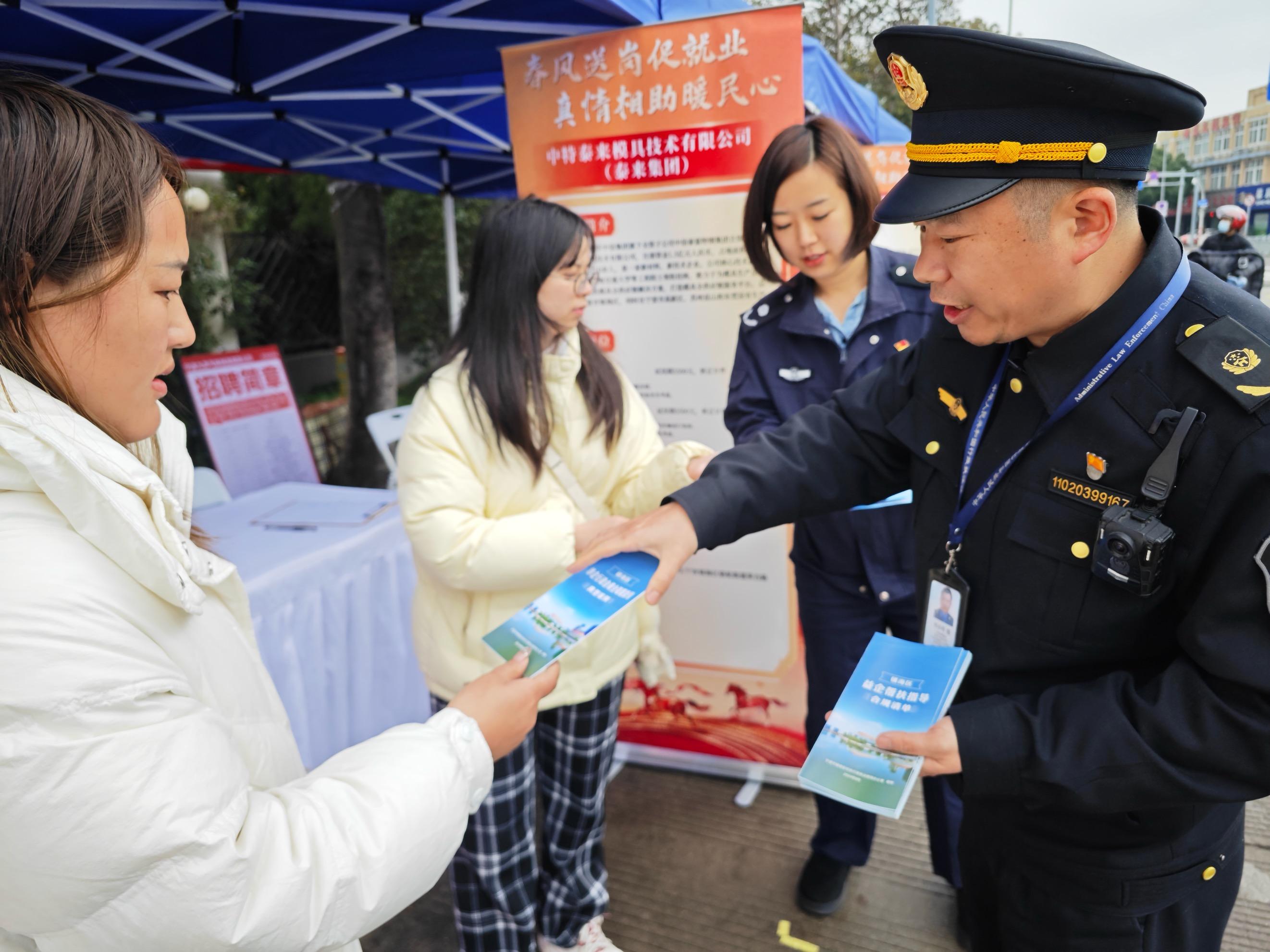 招聘會(huì)涵蓋制造業(yè)、餐飲、電商等行業(yè),駱駝街道綜合行政執(zhí)法隊(duì)將法律服務(wù)送到企業(yè)和求職者身邊。針對(duì)企業(yè)經(jīng)營(yíng)中常見(jiàn)的法律問(wèn)題“把脈問(wèn)診”,提出風(fēng)險(xiǎn)防范建議,以精準(zhǔn)普法助力企業(yè)搭建“防火墻”,此次活動(dòng)共發(fā)放鎮(zhèn)海區(qū)涉企行政規(guī)范全周期指引手冊(cè)40余份。針對(duì)燃?xì)獍踩?、文明養(yǎng)犬、垃圾分類(lèi)等民生熱點(diǎn)問(wèn)題,通過(guò)發(fā)放宣傳手冊(cè)、以案釋法等形式,執(zhí)法人員用通俗語(yǔ)言講解燃?xì)馐褂秒[患及防范要點(diǎn),文明養(yǎng)犬及垃圾分類(lèi)等注意事項(xiàng),切實(shí)增強(qiáng)群眾安全文明意識(shí)。