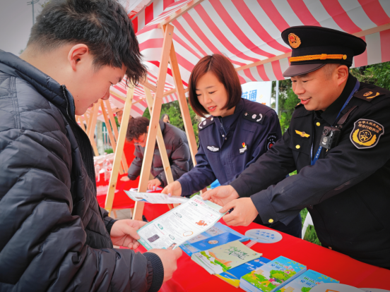 執(zhí)法人員向市民發(fā)放燃?xì)獍踩褂檬謨?cè)