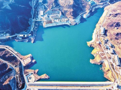 2月24日,無人機拍攝的國網(wǎng)新源河北易縣抽水蓄能電站下水庫。河北日報記者 許佳奇攝