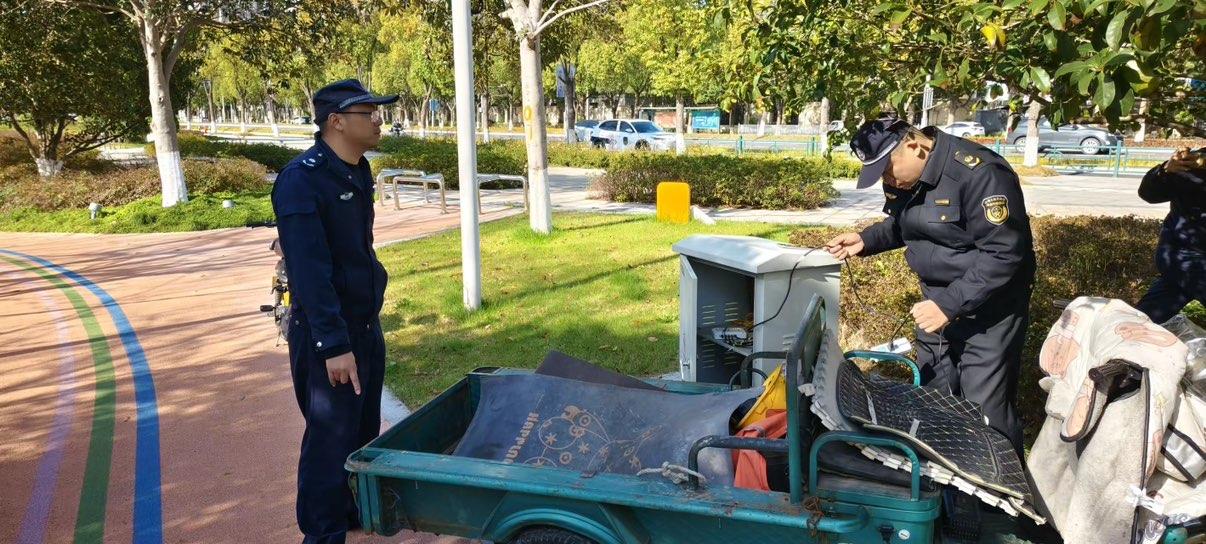 “好好的綠地怎么能停車呢?”執(zhí)法人員當(dāng)即上前查看,走近后更是驚出一身冷汗——電動(dòng)車旁散落著一個(gè)自帶的插線板,一根電線從公園公用變電箱接口處引出,連到插線板上,插座還在微微發(fā)熱,顯然正處于充電狀態(tài)。執(zhí)法人員立即上前叫醒正在一旁石凳上休息的老人,表明身份后,當(dāng)場(chǎng)制止了違規(guī)充電行為,拔掉了電線插頭。經(jīng)詢問得知,老人當(dāng)天騎電動(dòng)三輪車來(lái)到公園,眼看車輛電量不足,又不想多跑冤枉路,便動(dòng)了“就近充電”的念頭,看到公園角落的變電箱后,就私自拉開接口,接上自己帶來(lái)的電線和插座,還隨手將電動(dòng)車停在了旁邊的綠地上,完全沒意識(shí)到自己的行為既破壞了公共設(shè)施,又存在極大的安全風(fēng)險(xiǎn)。