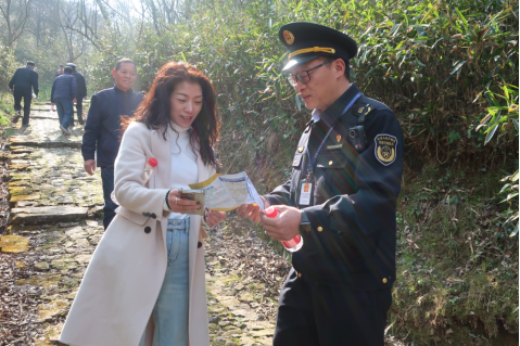 執(zhí)法人員向登山客進(jìn)行普法宣傳