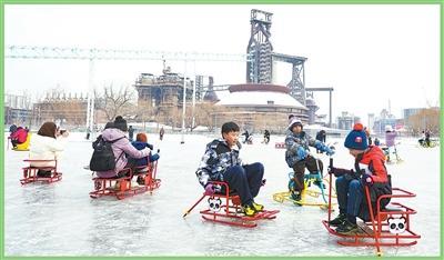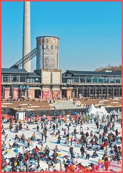 浙江省杭州市將杭鋼半山鋼鐵基地融合運河文化打造大運河杭鋼公園。圖為市民游客在體驗冰雪嘉年華。李盛韜攝(人民視覺)