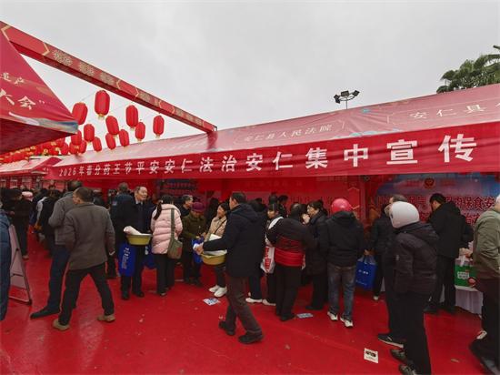 春分普法潤物微,法治春風帶客歸。近日,湖南省安仁縣委政法委、安仁縣法學會以“趕分社”非遺活動為契機,聯(lián)合市委政法委、市法學會和縣直政法各單位等平安建設暨掃黑除惡專項斗爭領導小組成員單位深入神農廣場開展2026年“春分藥王節(jié)平安安仁法治安仁集中宣傳”暨“青年普法志愿者法治文化基層行”主題宣傳活動,將傳統(tǒng)節(jié)氣、非遺盛會與現(xiàn)代法治精神深度融合,為全國各地的民眾、客商以及本地百姓送上一份豐盛的“法治大餐”。