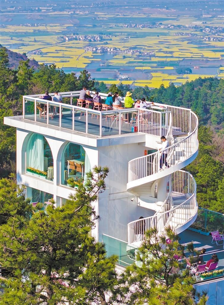3月13日,安徽省蕪湖市峨橋鎮(zhèn),游客在一家山頂咖啡館欣賞油菜花田美景。當(dāng)?shù)赝ㄟ^“生態(tài)+消費+體驗”模式,將自然風(fēng)光轉(zhuǎn)化為文旅消費動能。肖本祥 攝(中經(jīng)視覺)