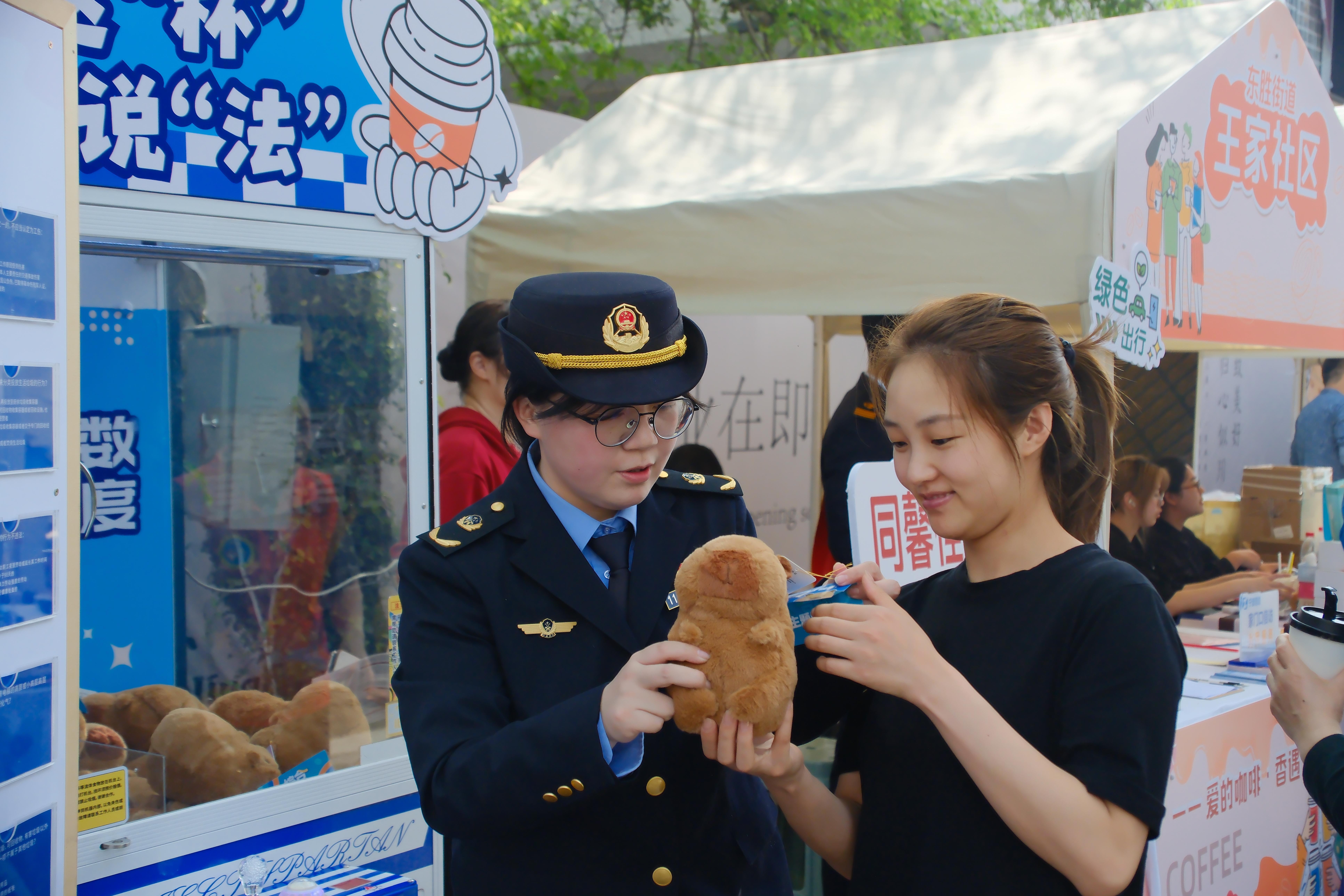 啟動(dòng)儀式后,東勝中隊(duì)打造的普法主題攤位迅速成為市集里的“人氣打卡點(diǎn)”?;顒?dòng)深度融合“鄞火蟲(chóng)”法治服務(wù)品牌惠民理念,執(zhí)法人員化身“普法攤主”,聚焦《寧波市養(yǎng)犬管理?xiàng)l例》《浙江省生活垃圾管理?xiàng)l例》等與群眾生活密切相關(guān)的法律法規(guī),精心推出“答題贏幣、互動(dòng)抽獎(jiǎng)”環(huán)節(jié)。市民通過(guò)參與法律知識(shí)問(wèn)答贏得娃娃機(jī)游戲幣,再通過(guò)抓取的娃娃兌換法治主題咖啡杯、普法文創(chuàng)等禮品。這種寓學(xué)于樂(lè)的方式,讓嚴(yán)肅的法條變得通俗易懂,讓法治宣傳更具吸引力,不少市民紛紛點(diǎn)贊:“逛咖啡節(jié)還能學(xué)法領(lǐng)禮品,這樣的普法形式接地氣、受歡迎!”