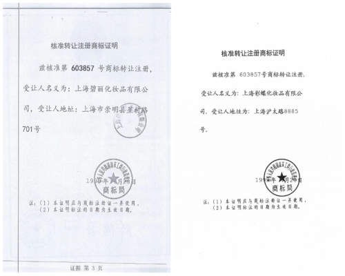 碧麗公司答辯稱,彩蝶廠、紅星廠和碧麗公司是一套班子一套人馬,“核心都是這些人。”該公司確實(shí)曾向法庭提交被指(變造)的商標(biāo)轉(zhuǎn)讓證,但最終未影響法庭審判。