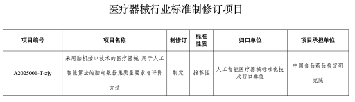 2月25日,國家藥監(jiān)局官網顯示,日前,國家藥監(jiān)局綜合司向中檢院(器械標管中心)發(fā)布通知,表示為滿足監(jiān)管急需,助推采用腦機接口技術的醫(yī)療器械高質量發(fā)展,經研究,國家藥監(jiān)局批準《采用腦機接口技術的醫(yī)療器械 用于人工智能算法的腦電數據集質量要求與評價方法》醫(yī)療器械行業(yè)標準制修訂項目立項。