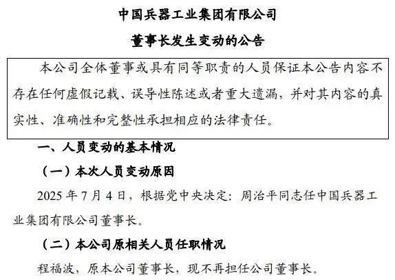 此前,兵工集團(tuán)原董事長、黨組書記程福波已調(diào)任中國航空工業(yè)集團(tuán)有限公司董事長、黨組書記,這一調(diào)動(dòng)使得兵工集團(tuán)董事長職位空缺,周治平的接任填補(bǔ)了這一關(guān)鍵崗位。