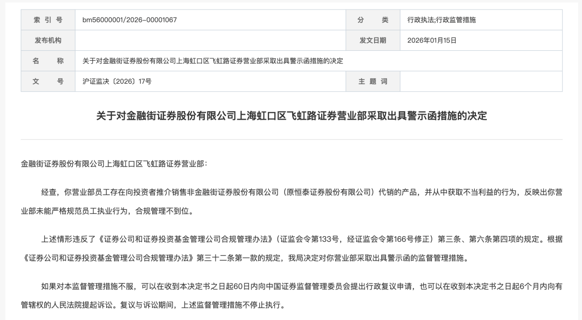 2025年12月31日,內(nèi)蒙古自治區(qū)證監(jiān)局、廣東省證監(jiān)局就金融街證券合規(guī)問(wèn)題同步發(fā)布警示函。