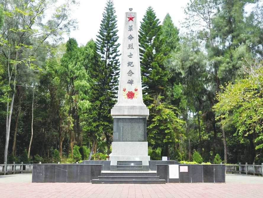 李卡烈士紀(jì)念碑坐落于他進(jìn)行武裝斗爭的主要活動(dòng)地——廣東韶關(guān)翁源。紀(jì)念碑高約10米,共分3層。碑身使用磚體結(jié)構(gòu)水泥筑就,正面銘刻著“革命烈士紀(jì)念碑”7個(gè)黑體大字,字體上方有紅星照耀,下方有鮮花環(huán)繞。碑身以下又分兩層,底下一層為碑座,同是磚體結(jié)構(gòu)水泥材質(zhì),中間一層則是銘刻著碑文的黑體瓷磚。紀(jì)念碑莊重大氣,望之肅然起敬。與一般紀(jì)念碑不同的是,碑的正面與背面都刻有碑文,正面碑文講述了翁源革命的歷史概況,尤為獨(dú)特的是背面碑文,主要文字竟然是一篇遺書。背面碑文全文如下: