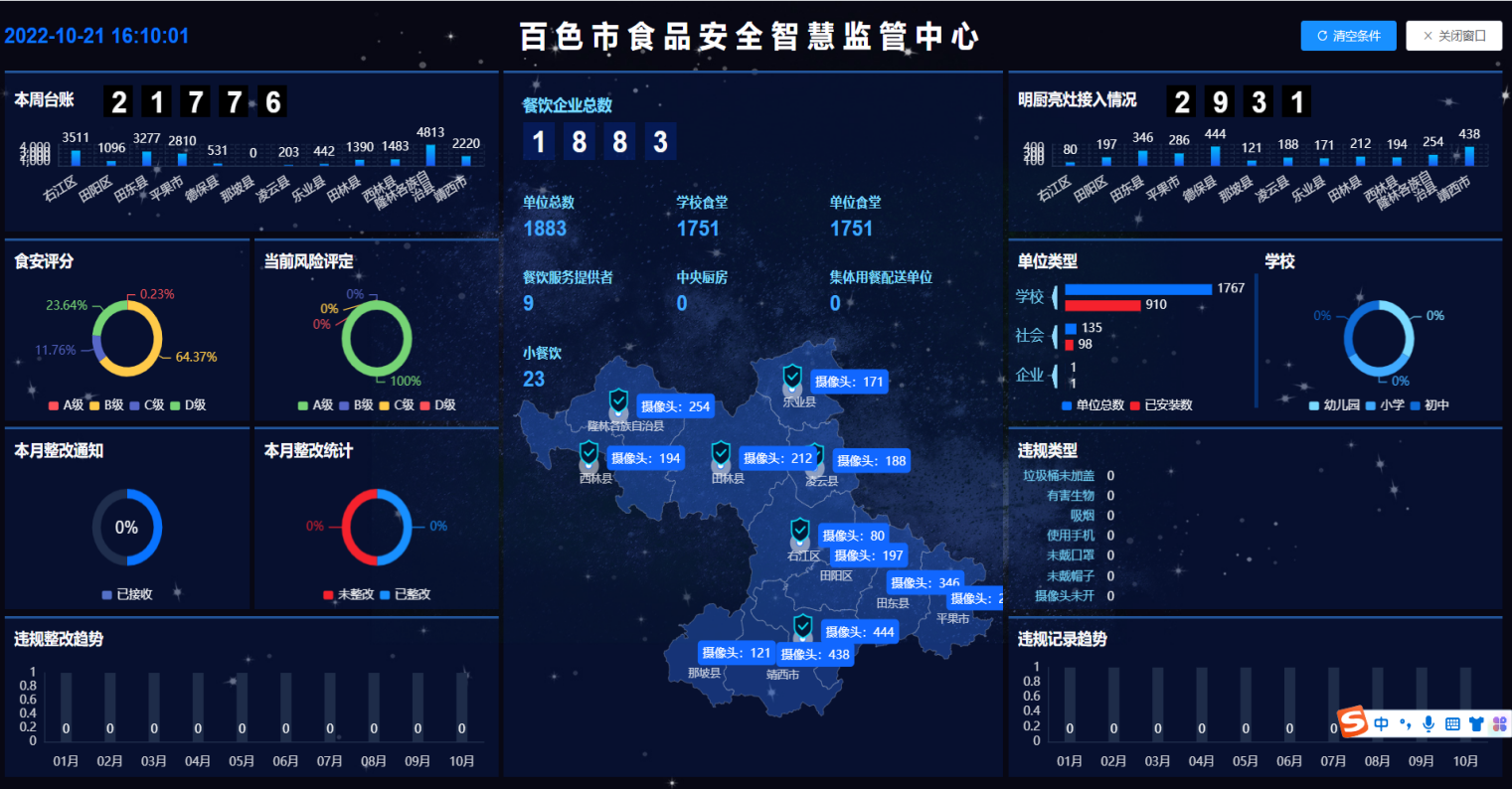 2022年6月,百色市人民政府印發(fā)《百色市學(xué)校食堂“互聯(lián)網(wǎng)+明廚亮灶”建設(shè)工作方案》,百色市建設(shè)了食品安全智能服務(wù)平臺(tái),并于2022年7月正式啟用。現(xiàn)已完成全市學(xué)校食堂以及集體配餐單位“互聯(lián)網(wǎng)+明廚亮灶”100%全覆蓋建設(shè)。
