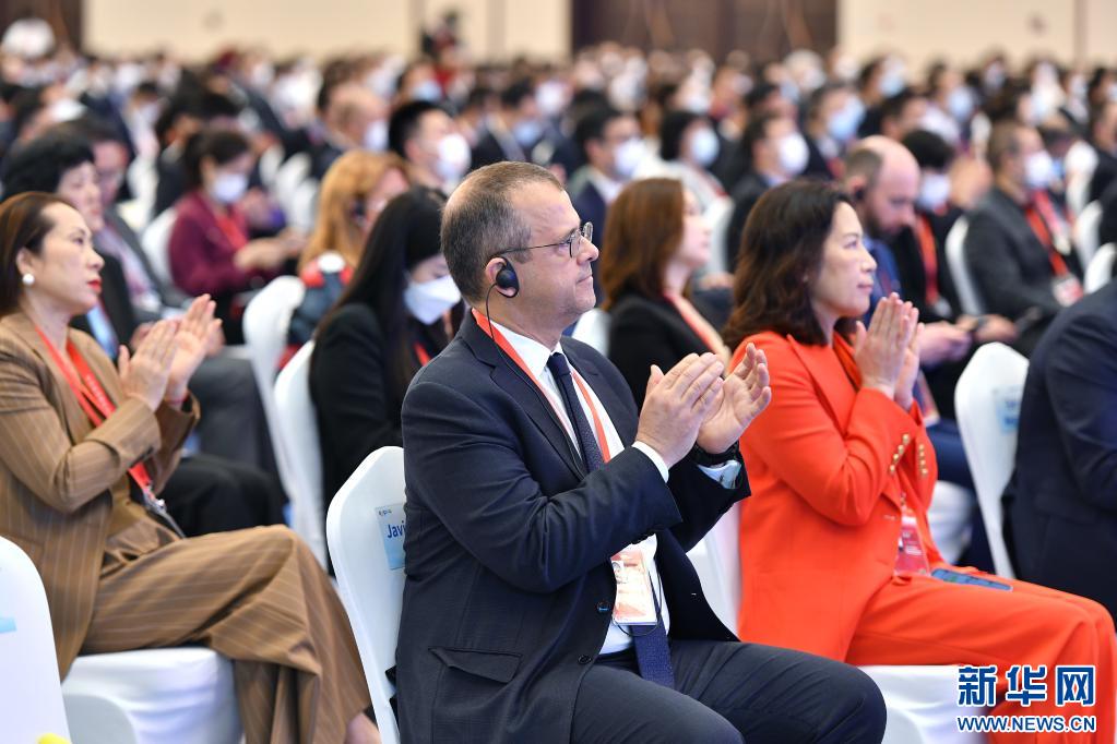 4月10日,與會者為發(fā)言嘉賓鼓掌。當日,第三屆中國國際消費品博覽會在海南??陂_幕。本屆消博會以“共享開放機遇、共創(chuàng)美好生活”為主題,將助力消費恢復(fù)和升級,為各國企業(yè)共享中國市場提供機遇。新華社記者 李鑫 攝